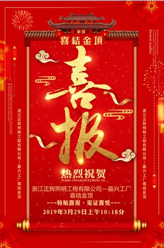 浙江正輝照明工程有限公司--嘉興工廠喜結(jié)金頂